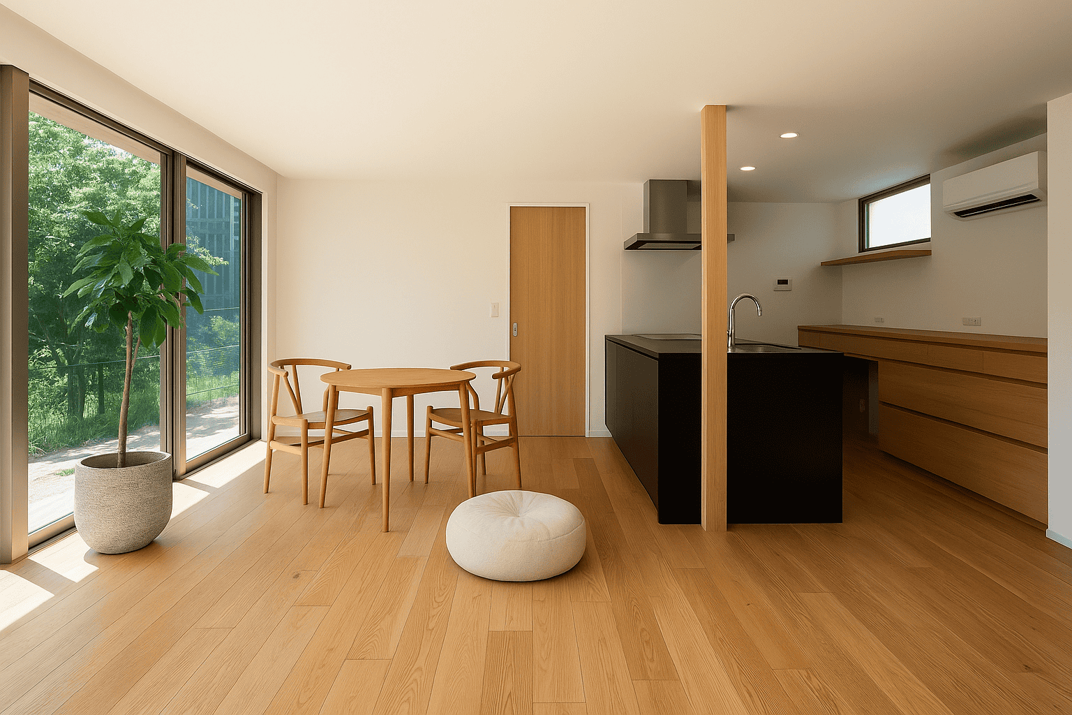 内装 | 床:ナラ無垢フロア 壁:クロス貼 天井:クロス貼 カウンター:タモ集成材 |